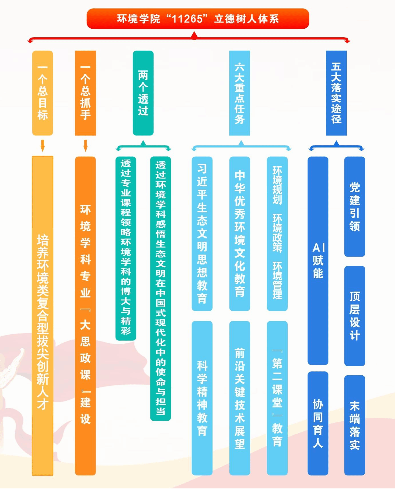 落实一个根本任务,构建富有环境特色的立德树人体系。完善育人体系。落实陕西省立德树人行动指南和学校立德树人实施方案,以培养环境类复合型拔尖创新人才为目标,构建了脱衣舞 “11265”立德树人体系,发起并举办全国首届环境类学科专业“立德树人”论坛,40余所全国一流大学及行业企业参会,深化交流互鉴,促进协同育人,着力提升我校环境学科建设与人才培养影响力,中国教育报、今日头条、西部网等作了专题报道,社会反响良好。建设“大思政课”。深入推进立德树人“千问千答”工程,发挥学业、朋辈、校外“三支导师”作用,定期开展“院领导面对面”活动,共答青春困惑,解决实际问题,助力成长成才。创新入学教育,精心组织“五个第一课”,教育引导学生尽快适应融入大学学习生活。申报获批国家级、省级课程思政与实践育人项目10余项。提升学业水平。坚持“课比天大”,全覆盖开展数字化教学素养培训,教授为本科生上课率100%,班子成员年度听课100余门次。深化访企拓岗,实施院领导联系导师促就业机制,毕业生就业水平居全校前列。建强团学组织。巩固“五四红旗团委”成果,深化团学组织改革,制定学生干部管理办法,规范召开学代会、研代会,共青团和学生会组织引领服务功能充分发挥。擦亮体育品牌。深化群众体育运动,提升竞技体育水平,校运会成绩连续6年位居全校第一。