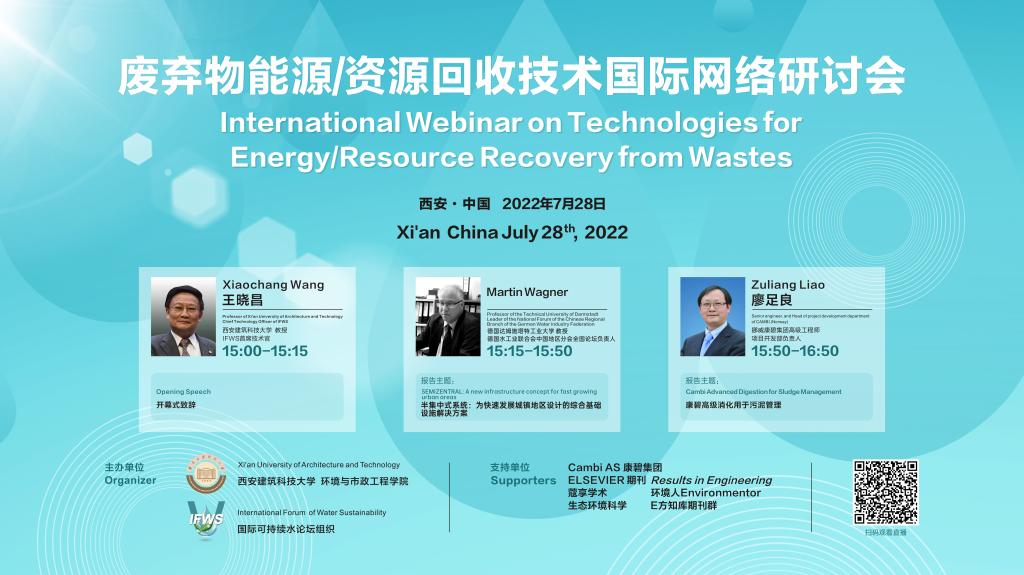 西安建大“黄河中上游水环境污染控制技术学科创新引智基地”联合国际可持续水论坛组织(IFWS)共同举办废弃物能源/资源回收技术国际网络研讨会,欢迎我校广大师生在线参会