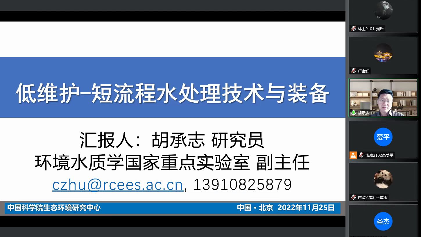 “环境大讲堂”第12期|胡承志:低维护-短流程水处理技术与应用