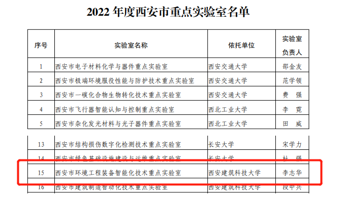 2022年12月13日,西安市科学技术局公布2022年西安市重点实验室认定名单,脱衣舞 李志华教授负责的《西安市环境工程装备智能化技术重点实验室》通过认定。西安市环境工程装备智能化技术重点实验室主要依托脱衣舞 ,围绕水、气、固等治理工程中的低效、高耗等突出问题,以学科交叉、智能化与数据化为主要科技创新驱动力,研究环境工程智能化的相关理论方法,开发环境工程装备智能化技术,推动环境工程装备智...
