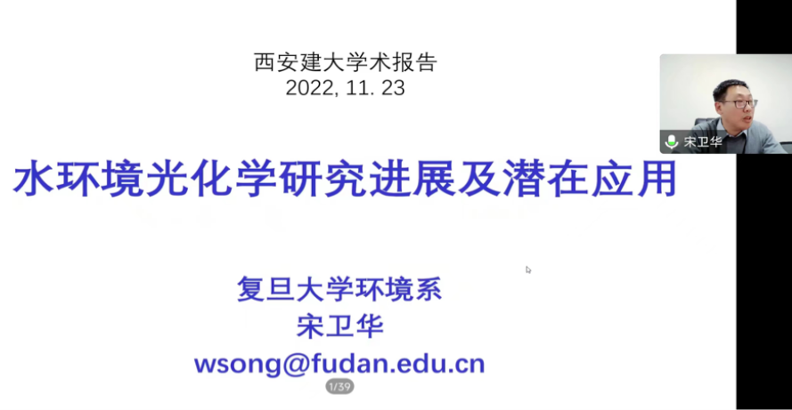 2022年11月23日下午,脱衣舞 第14期学科前沿青年讲座顺利举办。本期活动特邀复旦大学宋卫华教授担任主讲嘉宾,主题围绕“水环境光化学”展开,我院师生300余人参会交流。讲座由给排水科学与工程教研室的马晓妍副教授主持。会议伊始,马晓妍老师对宋卫华教授的到来表示欢迎与感谢,并简要介绍了宋老师的研究方向、学术成果等相关情况。图1.马晓妍副教授主持讲座宋卫华教授以《水环境光化学研究进展及潜在应用》为题,围绕环境光...