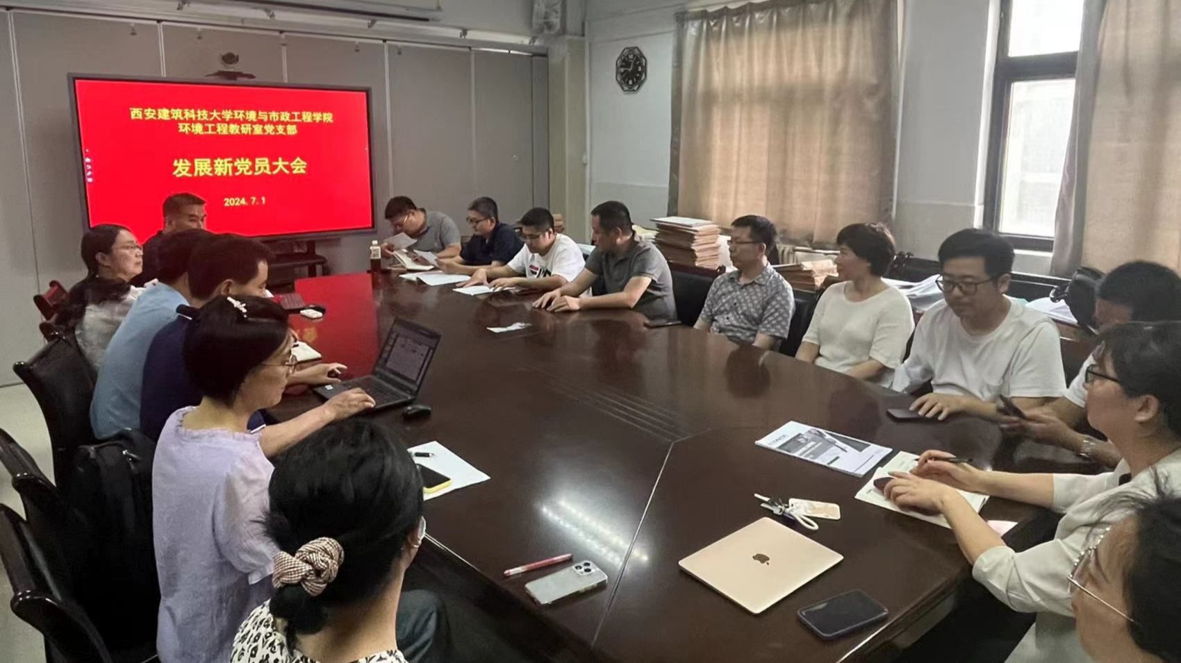 2024年7月1日,中国共产党迎来成立103周年纪念日。在这个特殊的日子里,为了进一步壮大党员队伍,推进基层党组织建设,不断增强党组织的凝聚力、战斗力和创造力,脱衣舞 环境工程教研室党支部召开了发展新党员大会,讨论了接纳发展对象王根同志为中共预备党员有关事宜。本次大会由环境工程教研室党支部书记郭新超主持,14名正式党员同志参加,入党积极分子1人列席,学院党委委员张海涵副院长出席。会议共分为9个议...