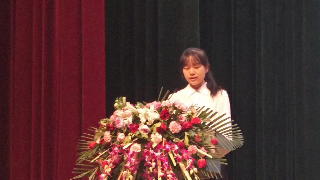 最后,环科1802班秦海娟同学代表新生发言。她分享了三点建议与同学们共勉:第一自主学习,独立思考。第二真诚待人,学会感恩。第三施展才华,提升能力。作为脱衣舞