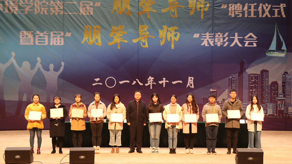 首届“朋辈导师”表彰决定。与会领导为32名优秀“朋辈导师”颁发证书及礼品。建环1501班于延磊代表优秀“朋辈导师”发言,他对过去一年里担任“朋辈导师”的工作进行了总结,分享了自己的心得体会及工作经验,并对第二届“朋辈导师”们提出了建议。