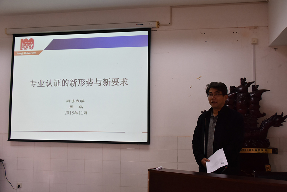 为了更好推进我院环境工程专业工程教育认证工作,学院于2018年11月22日在环工楼712举行了工程教育专业认证工作专题报告会。会议特邀中国工程教育专业认证协会的资深专家、同济大学环境科学与工程学院博士生导师周琪教授作专题报告。任勇翔院长、刘立忠副院长、教学办老师、环境工程教研室全体教师、实验室及相关教研室老师聆听了此次报告。