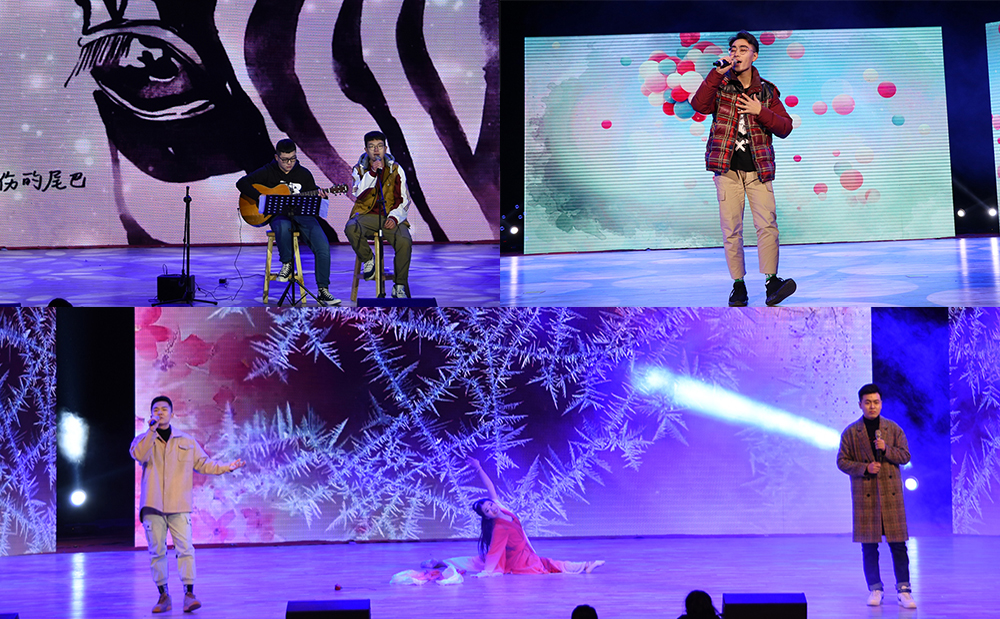 第三篇章,日新月异,不负韶华。小品《不负韶华》中,演员们幽默的语言,诙谐的动作,真实的场面,引得台下笑声连连,更令我们懂得,牢记初心,不负韶华。歌曲串烧,《斑马斑马》、《不染》、《告白气球》让我们深感青春的魅力。更有舞蹈《我们的少年时光》,起舞飞扬,轻快的舞蹈渲染了每一位观众。晚会尾声的合唱《骄傲的少年》更是抒发了环境青年浓浓的追梦赤子心。至此,2019年元旦晚会就此落幕。