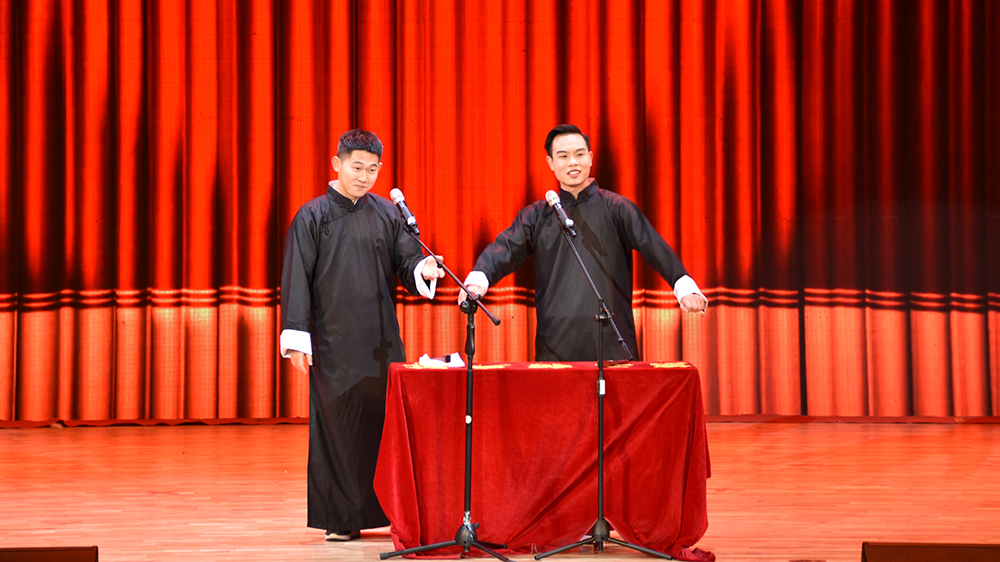 第二篇章,立志行道,以梦为马。电钢与萨克斯的旋律伴着婉转的歌声和优美的舞步,歌伴舞《忽然之间》让令人深感邂逅的甜蜜。校体舞队带来的火热与温情并存的舞蹈《fairy tale》紧随其后,现场气氛一时沸腾。相声《当今之症》更是捧逗俱佳,演员你来我往,插科打诨,引得现场观众捧腹大笑。在舞蹈《护花使者》中,辅导员和学生干部们劲爆的舞姿将晚会带到了最高潮,让我们见识到导员们活泼可爱的另一面。
