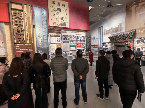 关中革命纪念馆作为赓续红色血脉、凝聚奋进力量的文化新地标,展陈面积达1.2万平方米,通过2000余件文物、300余幅历史照片及10余处场景复原,构建起“烽火关中”、“习老风范”、“三秦新篇”三大主题展区,系统展现了关中地区从土地革命到解放战争时期的革命斗争历程,重点呈现了习仲勋同志“党的利益在第一位”的崇高精神风范,反映了新时代以来三秦大地广大干部群众奋力谱写中国式现代化建设陕西新篇章的生动实践。在讲解员的引导下,党员们循着历史脉络,依次参观各主题展区,沉浸式感受红色历史的温度与力量。