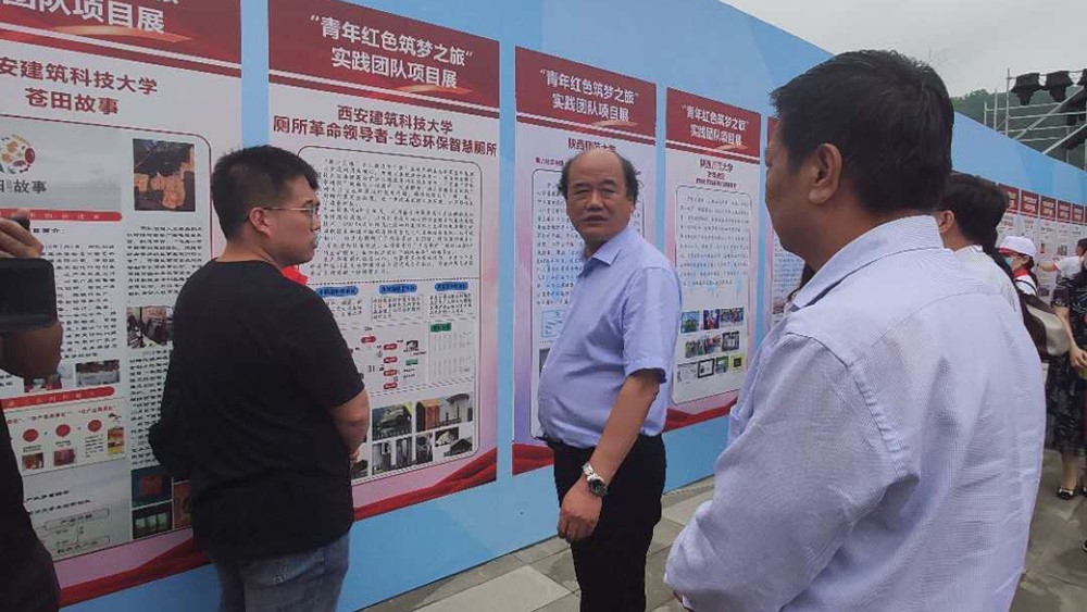 在“生态环保智慧厕所”项目展板前,陕西省教育厅副厅长刘建林关切的询问了该项目的技术原理及应用情况,项目负责人脱衣舞