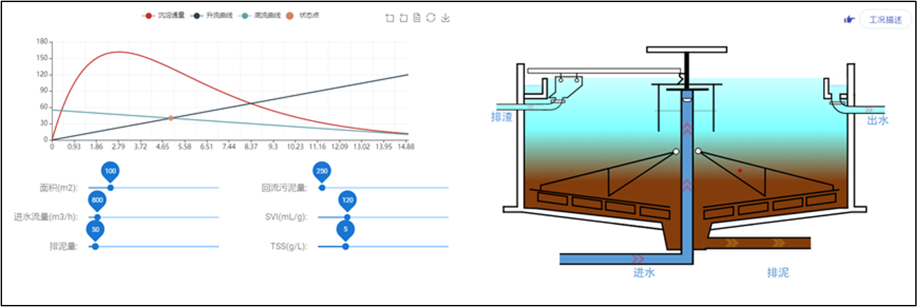 水处理工艺虚拟仿真实践平台由软件系统与硬件设备两部分组成,包含生物处理过程虚拟仿真与污泥沉淀过程虚拟仿真两个板块,前者模拟了活性污泥去除污染物的生物过程,后者模拟了沉淀池的澄清与浓缩过程。软件系统解决了在污水厂实习过程中学生的“看不见”问题,硬件设备解决了学生的“摸不着”问题,“软件+硬件”最终解决了学生的“搞不懂”问题。