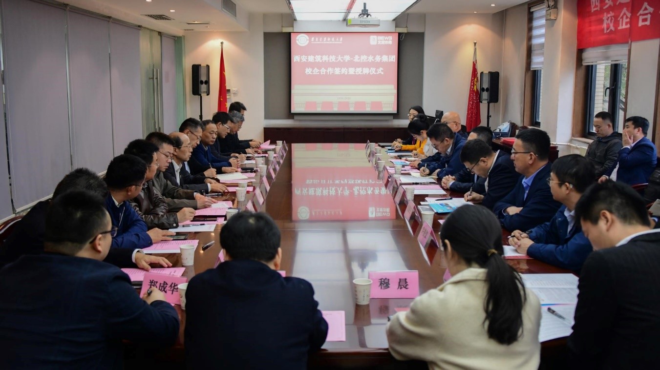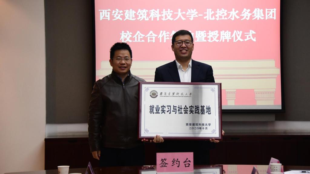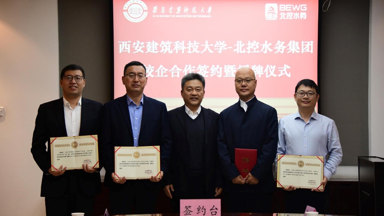 10月30日下午,北控水务集团与我校校企合作签约暨授牌仪式在雁塔校区举行。北控水务集团高级副总裁、北控水务学院院长于立国一行12人、副校长黄廷林、对外合作办公室、人事处、教务处、科技处、研究生院、学生处、创新创业教育办公室等部门的负责同志、脱衣舞