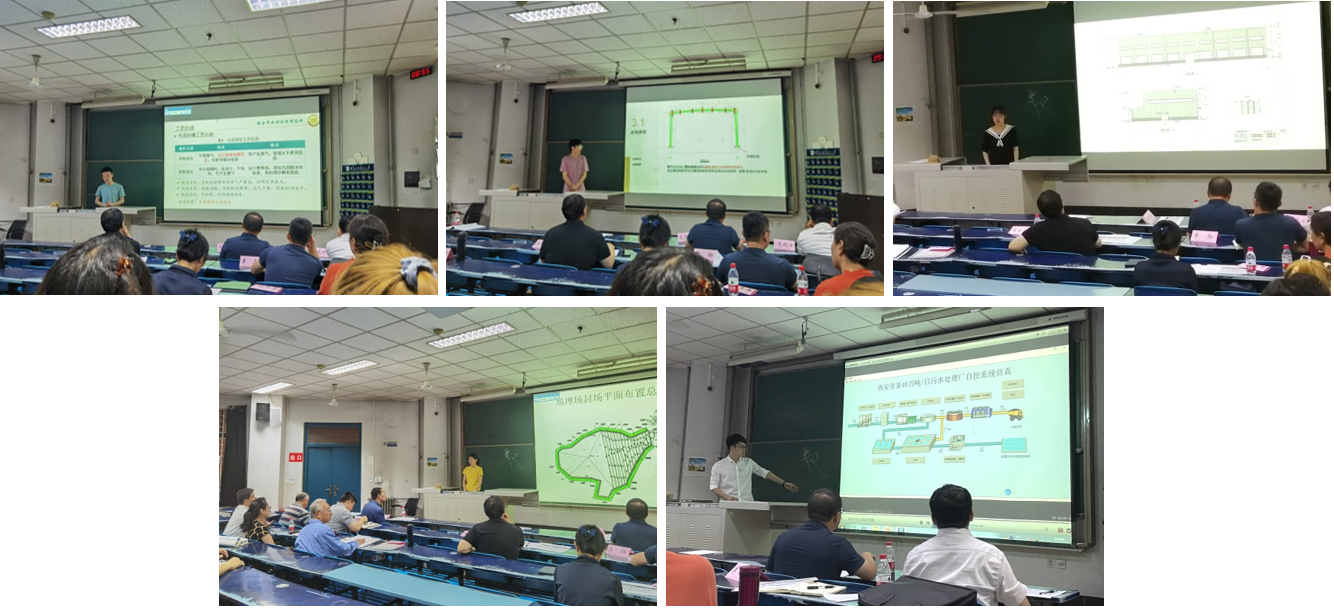 、土木学院、建科学院和管理学院的师生们共同努力,目前已经连续有效实施三年。这三年来,参与教师进行不断优化完善,逐年扩大专业配比,更新设计题目,优化设计内容。2021年(今年)在设计选题方向上又有新的突破,在污水处理工程设计方向的基础上,增加了固体废物处理工程设计方向,增加了新的教师参与。跨专业联合毕业设计是采用设计院运行模式,培养学生在多学科背景下解决复杂工程问题的能力。通过跨学科-多专业的深度交流,使学生掌握设计过程中不同专业沟通、交底的程序方法,提高学生工程认知、分析、解决、表达和交流能力,实现了多专业背景协同解决复杂环境工程问题的能力培养,构建了工程教育创新型实践模式。答辩会分两个阶段进行。