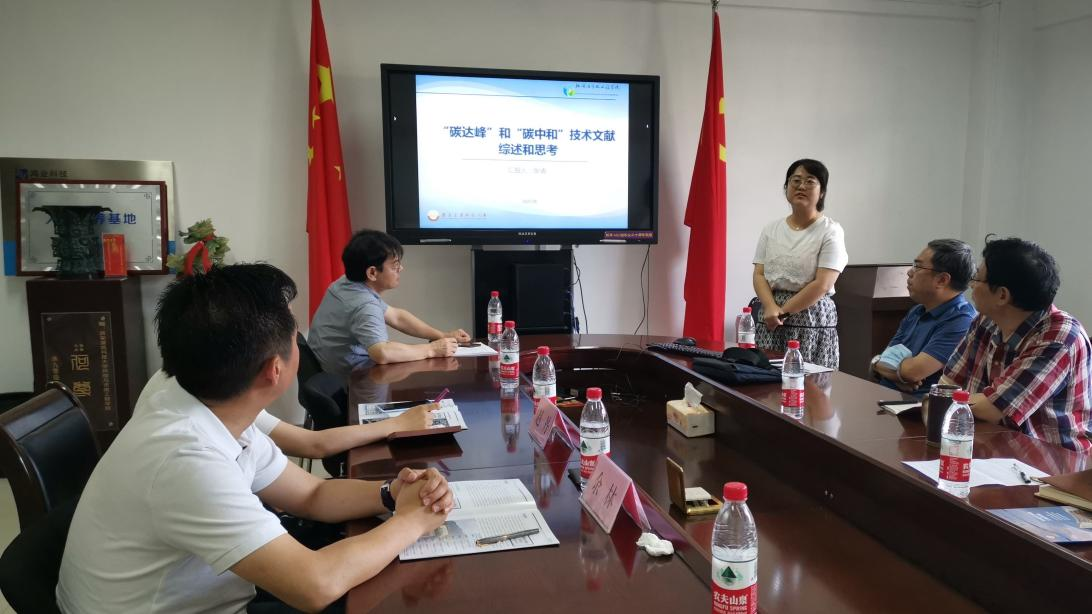 教师代表张倩副教授以《碳达峰和碳中和技术文献综述和思考》为题作报告,围绕国内和国际碳减排理念、前沿减碳途径,学院为实现双碳目标提供学科支撑等方面进行了交流。随后,与会教师就现有科研成果与双碳目标结合的情况进行了探讨,一致认为在已有专业优势的基础上结合政策需求,进行研究方向的创新对学科发展具有重要的意义,并在未来的科研工作中需进一步注重成果转化和技术落地。