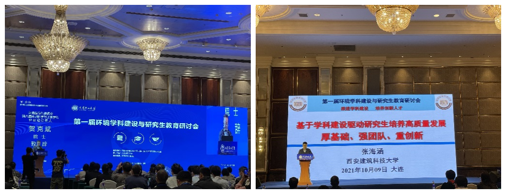 2021 年10 月8 日-10 日,第一届全国环境学科建设与研究生教育研讨会在辽宁省大连市成功举办。本届会议以“立德树人成效与经验、学科建设成效与经验、学科发展现状与机遇、研究生的课程与教材”为主题,围绕学科特色方向建设及发展规划、成长型学科与优势学科、研究生课程思政和教材建设等开展交流。会议由国务院学位委员会第八届环境科学与工程学科评议组主办。我校黄廷林副校长、卢金锁院长、张海涵副院长和郭明老师等一行四人参会。