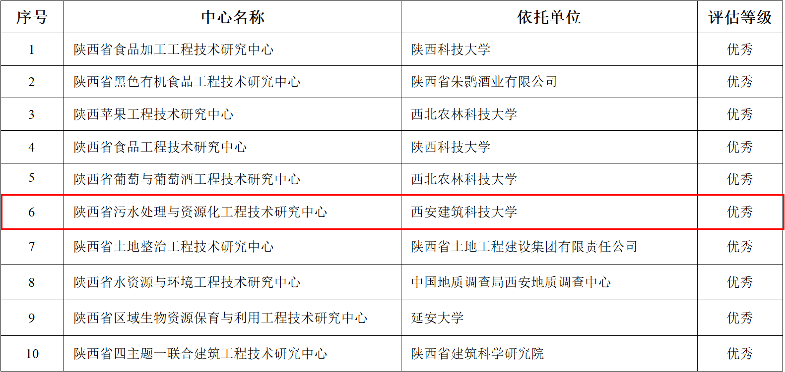 近日,陕西省科技厅公布了2021年度陕西省工程技术研究中心评估结果,我院“陕西省污水处理与资源化工程技术研究中心”评估等级为优秀。