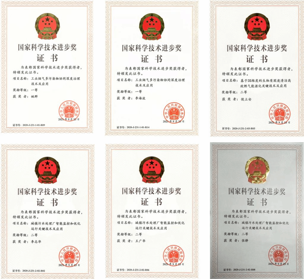 姚群、李海波作为主要完成人的“工业烟气多污染物协同深度治理技术及应用”获国家科技进步奖一等奖。侯立安作为第三完成人的“基于3S维度的生物质固废清洁高效燃气能源化关键技术及应用”获国家科技进步奖二等奖。李志华作为第二完成人和王广华、张静作为主要完成人的“城镇污水处理厂智能监控和优化运行关键技术及应用”获国家科技进步二等奖。