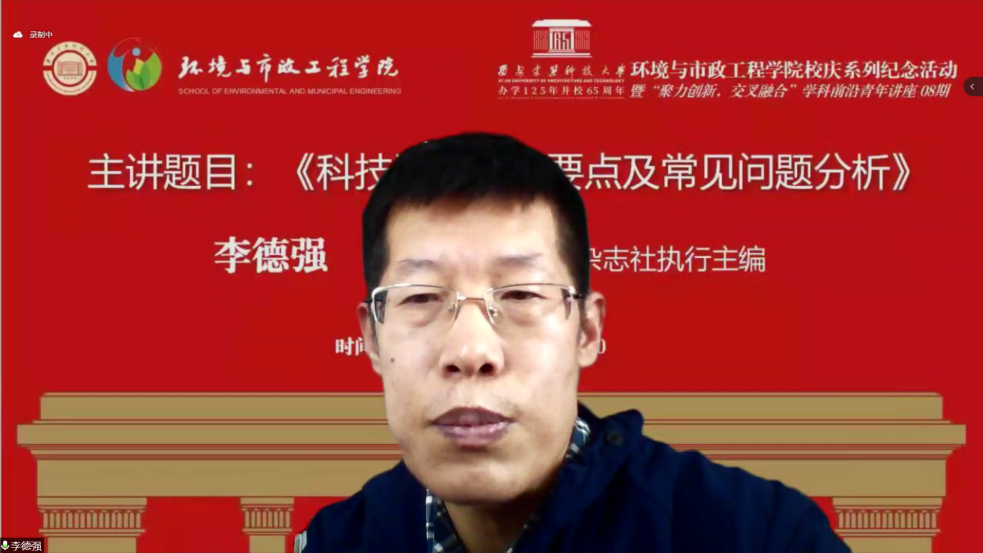 特邀《中国给水排水》杂志社执行主编李德强担任主讲嘉宾,组织开展了第八期学科前沿青年讲座,以实际行动向我校办学125年并校65周年校庆献礼。受疫情影响,讲座采用线上方式进行,校内师生300余人与会交流。讲座由脱衣舞
