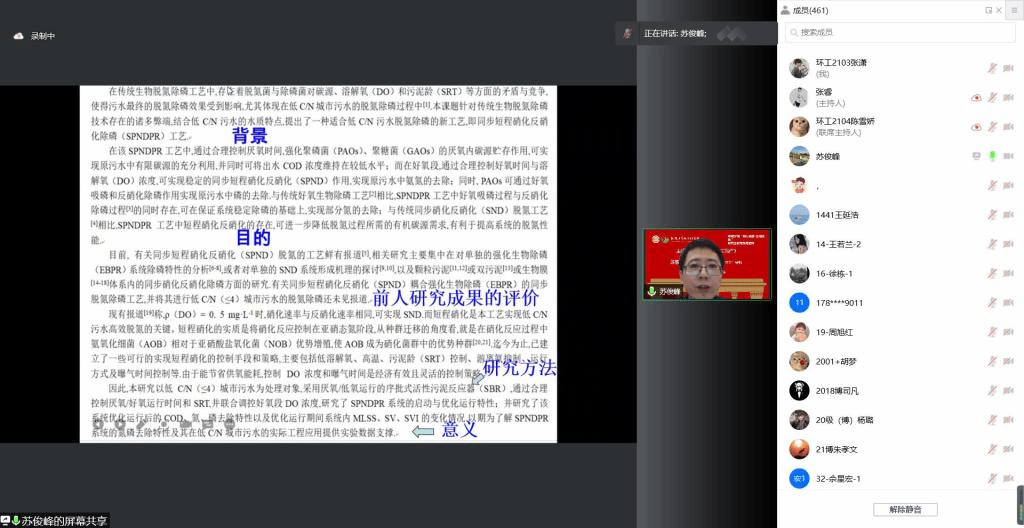 第三期特邀我院环境废弃物能源与资源再生创新团队的师资博士后杨媛老师担任主讲嘉宾。杨老师以《科研路上的感悟与收获》为题,她首先对科研初心进行了分享,并总结了求学期间的科研经验,强调研究中一定要与导师建立有效沟通,对实验项目要进行阶段性的思考与总结;最后,她建议同学们要提高学习的自主性与积极性,时刻保持一颗赤子之心,怀揣梦想,不断奋进。