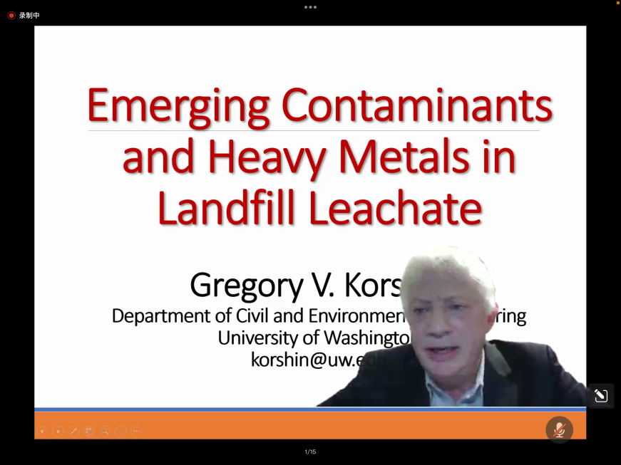 Korshin教授以"Emerging Contaminants and Heavy Metals in Landfill Leachate"为题,首先向大家介绍了个人的学术经历和研究方向,并简要介绍了华盛顿大学土木与脱衣舞
