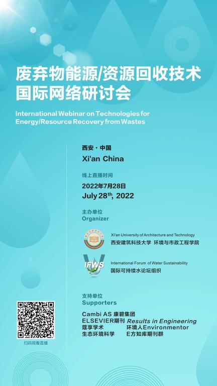 西安建大“黄河中上游水环境污染控制技术学科创新引智基地”联合国际可持续水论坛组织(IFWS)共同举办废弃物能源/资源回收技术国际网络研讨会,欢迎我校广大师生在线参会!