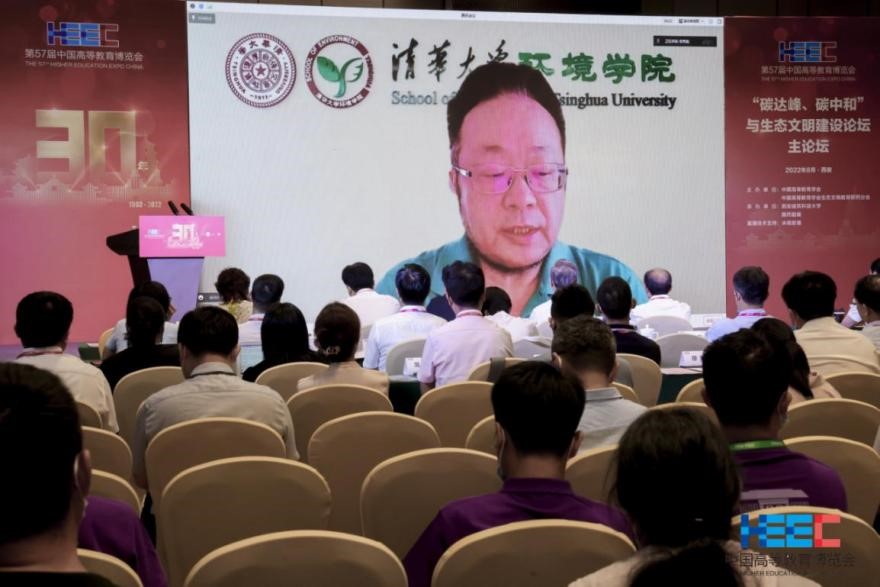 贺克斌院士在致辞中指出,全球变暖、生物多样性和环境污染三件大事在联合国受到了高度关注。希望通过本次论坛搭建平台,使生态文明教育研究分会的工作与“双碳”目标深度结合,促进国内外学术交流,联合知名高校、研究机构和相关企业,邀请顶级专家和学者,推动碳中和领域的科技进步,为国家生态文明建设事业做出贡献。