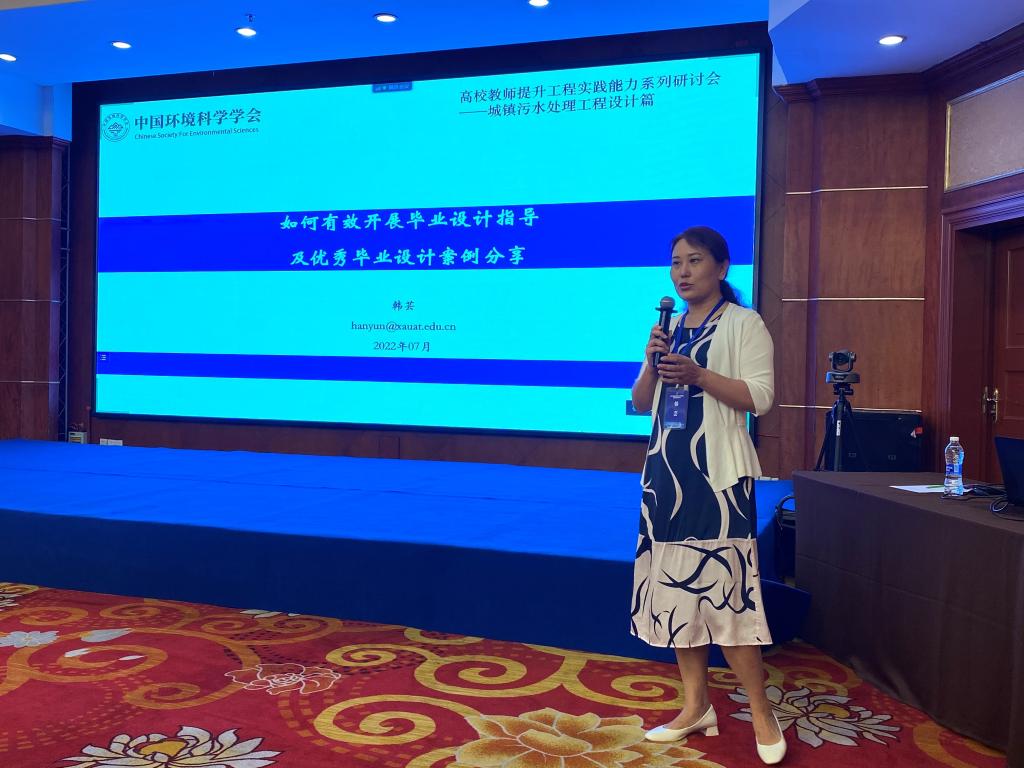 韩芸教授,研讨会系统探讨了城镇污水处理工程设计的理论知识与实际案例。