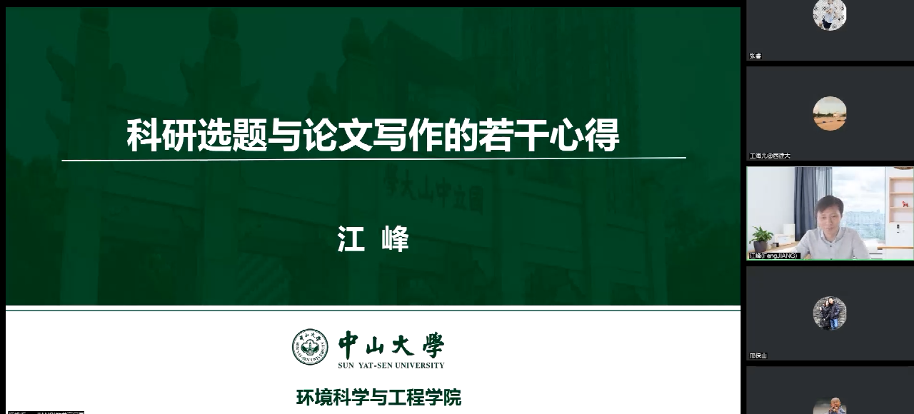 组织了代表作与国基金质量提升系列报告第2期活动,特邀中山大学环境科学与工程学院江峰教授分享报告,我院青年教师及博士生70余人参会,会议由副院长李志华主持。