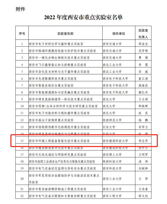 李志华教授负责的《西安市环境工程装备智能化技术重点实验室》通过认定。