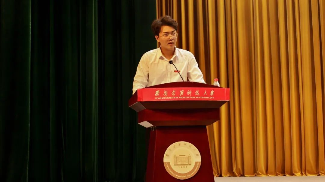 典礼第三项,环境工程教研室王琎老师代表全体教师寄语新生。王琎老师结合自己的学生时代经历和新生分享了三点感悟。第一点,关于生活要学会接纳包容,乐观向上,生活才会更加美好,希望同学们可以像水一样,无所不利,上善若水,善利万物而不争。第二点,在学习方面要积极主动,勤于思考,钻研创新。要同时培养自己的学习能力,勇于质疑,谨慎求证,广泛吸纳,追求真理,勇于创新,为将来的发展改善坚定的基础。第三点关于未来接受现实,自我成长,培养灵活性。希望同学们能够快速的适应新的环境,融入新的集体,树立自信,找到自己热爱的事业并为之努力。最后他指出,要不负青春怀志之心,立鸿鹄之志,作一名有情怀,有担当的环境青年。