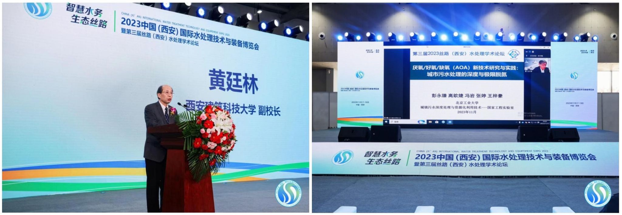 学术论坛邀请了北京工业大学彭永臻院士(线上)、崔福义教授、火箭军工程大学侯立安院士(线上)、以及李伟光教授,分别以“厌氧/好氧/缺氧(AOA)新技术研究与实践:城市污水处理的深度与极限”、“低碳目标背景下饮用水安全保障技术面临的问题与挑战”、“脱氮膜法水处理卡脖子技术难题及应对策略”和“氯/紫外工艺强化饮用水消毒及增效去除典型污染物研究”为题作主旨报告。根据西北地区水环境特点,大会另设十个分论坛:黄河流域水环境治理与生态修复、智能化水系统技术创新与应用、城镇给排水系统安全运维与智慧管控、污废水低碳处理与资源回收、饮用水水质安全保障技术与装备、城市污泥资源化利用与安全处置、高效膜分离技术及其应用、人工湿地与海绵城市、水源水质污染与原位改善以及水处理新材料与药剂。