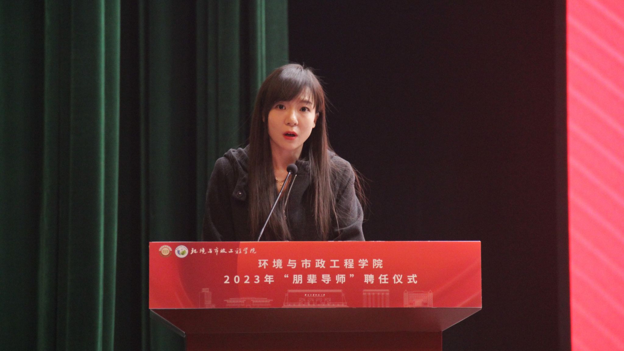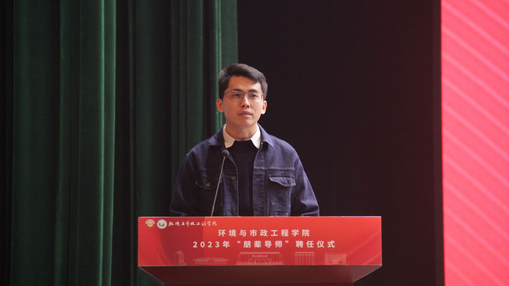 随后,市政2301班聂飞同学代表第七届朋辈导师进行发言。他指出大学能收获的远比想象中的更多,并提出了三点倡议:高年级同学要发扬团结互助的精神,帮助学弟学妹克服学习与生活中的迷茫;与低年级同学建立起深厚友谊,帮助他们尽快适应大学生活;传承环境人互帮互助、争做榜样的优良传统。