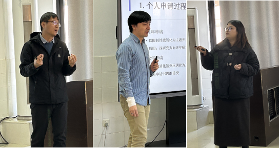 随后,我院给排水教研室杨垒副教授、环工教研室卓杨博士后和王雪萌副教授依次做了主题为“道阻且长,行则将至—基金申请的教训与经验浅谈”、“思维转变与体会”、“青基项目申请的心得与体会”的交流分享。