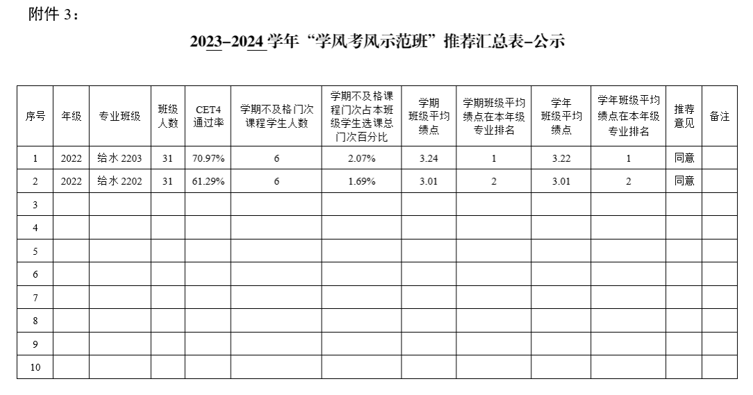“学风考风示范班”及“学风考风示范班优秀指导教师”评选公示