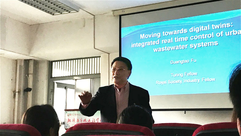 师生做了题为“走向数字孪生:城市污水系统的集成实时控制”的学术报告。报告会由王晓昌教授主持,环境、市政学科相关方向的师生近一百余人参加了本次报告会。