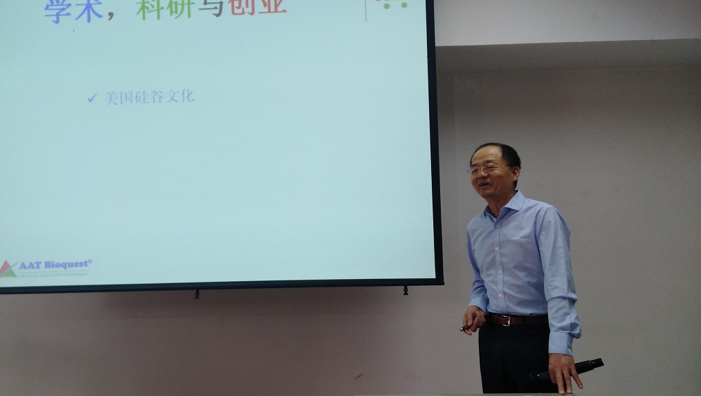 报告会上,第五振军博士从美国硅谷文化、创业经历、经验与教训三个方面阐述自己的学术、科研与创业之路。他首先介绍美国硅谷文化,详述硅谷形成历史、互联网更新历史、生物技术历史;从“天不时地不利而人和”的角度阐述了硅谷的人与文化。其次,他又说硅谷经济,其主要由计算机与网络软件、半导体硬件、生物技术、医疗器械四个方面组成。随后,第五振军博士分享了创业经验与教训,尤其讲到走出舒适区、广交朋友的第一性。最后,他凭借自己在最艰难的前三年创业经历,告诫大家无论学术、科研还是创业都需要明确目标,充分准备,从易到难,持之以恒。
