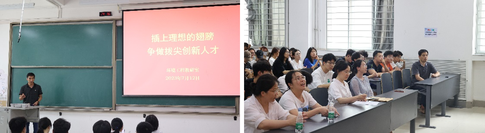 为进一步增强学生的创新创业意识,深入拓展大学生的创新创业思维,提升大学生赛事实战能力,推动学院创新创业教育高质量发展,环境工程教研室于2023年7月12日14:00在草堂校区9-103教室组织了一场面向2022级本科生关于创新创业专题的学业指导会,杨永哲、曹利、张璐鑫、罗丽和苗瑞等专业老师及2022级环境工程专业全体本科生参会,由郭新超老师主持指导会。