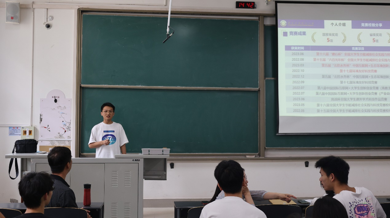 会议还邀请了学业成绩优异且在大创国赛、省赛、校赛中取得过骄人战绩的给排水科学与工程2020级在校本科生白江涛和环境工程2020级在校本科生刘一萱分享他们的竞赛经验。