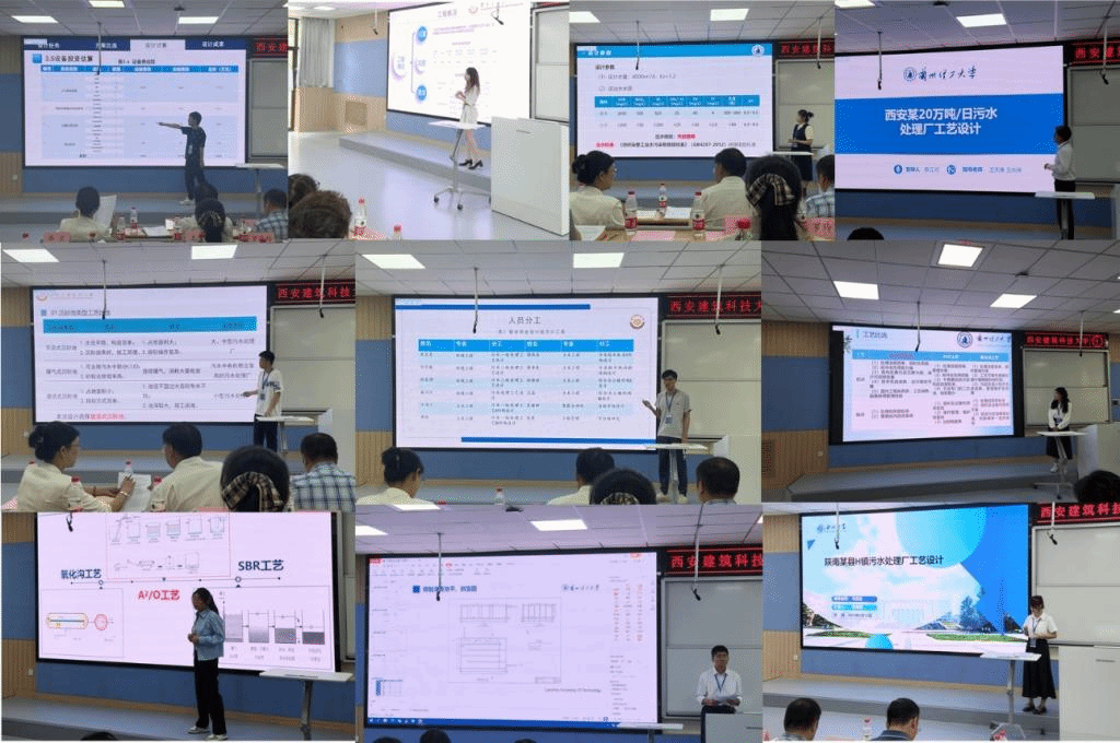 雁塔校区西阶201教室进行了典型答辩。本次答辩特安排水污染控制、大气污染控制、固体废物处理处置相关方向的设计内容进行交叉展示,充分体现了基于西北环境工程虚拟教研室平台协同创新和优势互补的特色运行模式。