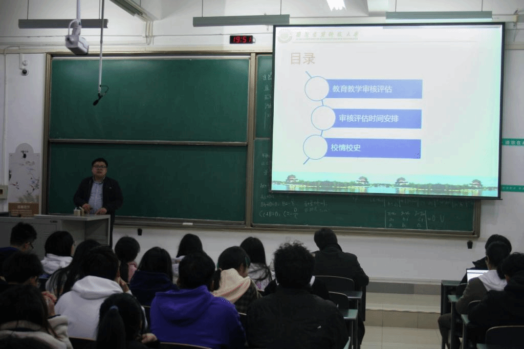 会议伊始,由殷亚楠老师向同学们介绍了新一轮本科教育教学审核评估的意义、时间安排以及本校校史校情。殷老师由什么是新一轮审核评估展开,就开展审核评估的必要性进行了详细的说明。基于新一轮审核评估“以评促建、以评促改、以评促管、以评促强”的十六字方针,殷老师强调了审核评估对本科生成长环境的影响,明确了学生是审核评估的最大受益者,向同学们介绍了我校“培养学术型人才”的评估类型及选择依据,对同学们积极参与、密切配合我校新一轮审核评估工作提出了殷切期望。