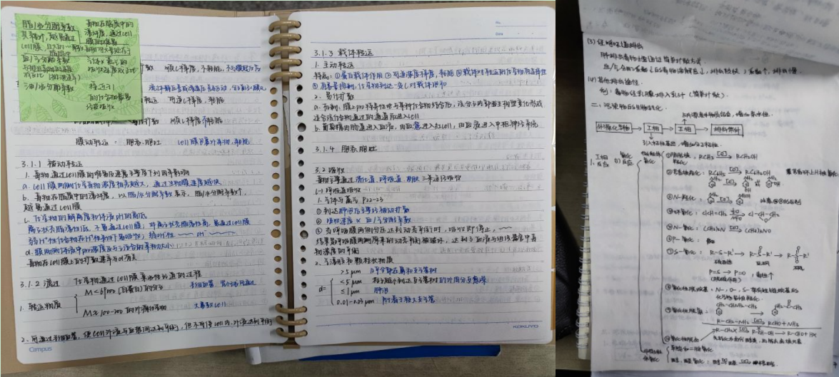 四位老师对环境科学2019级学生本学期的三门专业课程《环境毒理与风险分析》、《环境化学》和《环境工程微生物学》的笔记进行了检查,并解答了学生在专业课学习中的疑问。最后,张老师对此次课堂笔记的检查情况进行了总结。督促同学们平时上课要认真听讲,下课后也要及时归纳整理上课所学的内容,并希望其余同学们向笔记认真的同学学习。