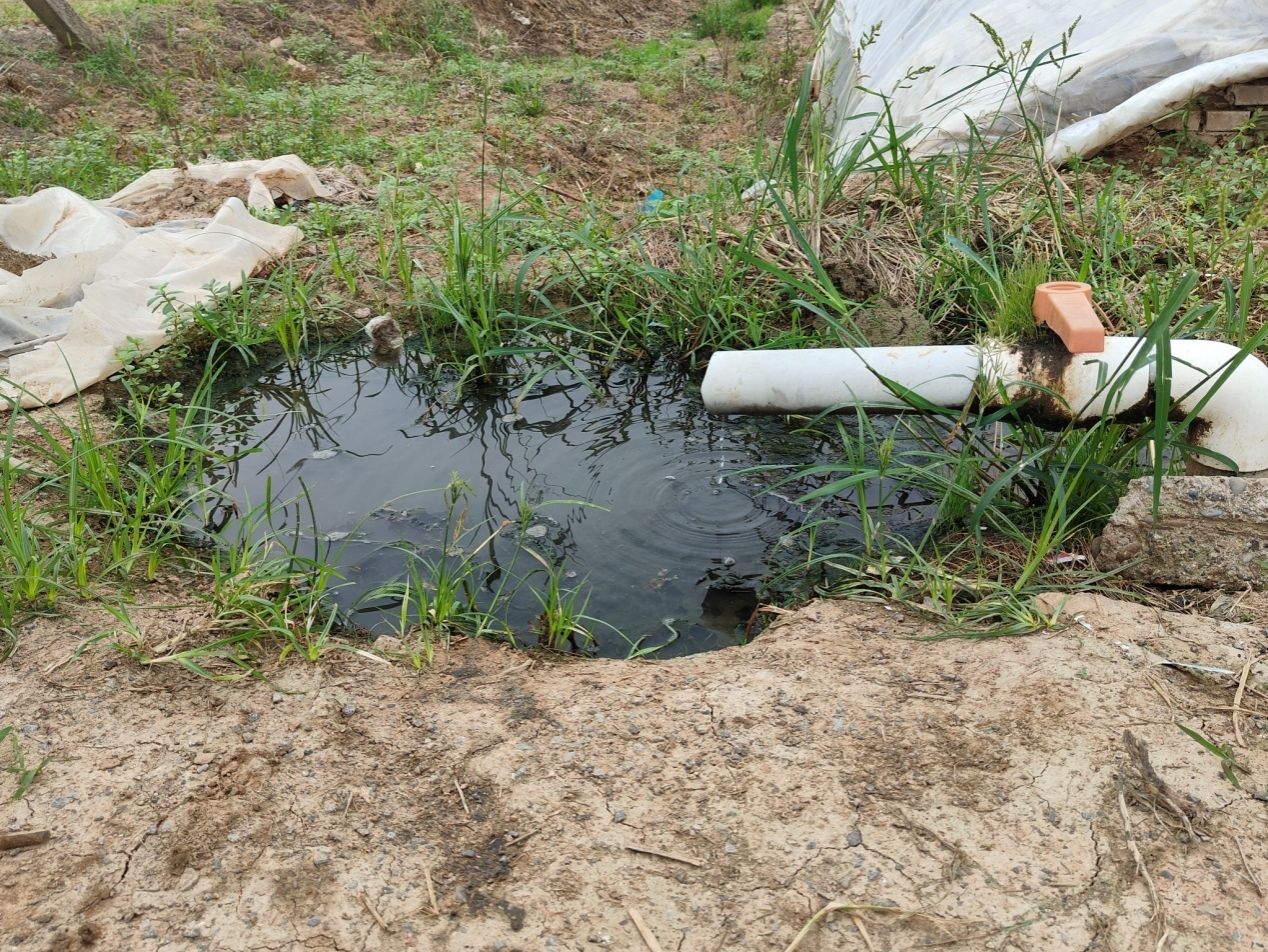 图为调研团队在田间发现樊尧村灌溉水现状 韦书杰 摄