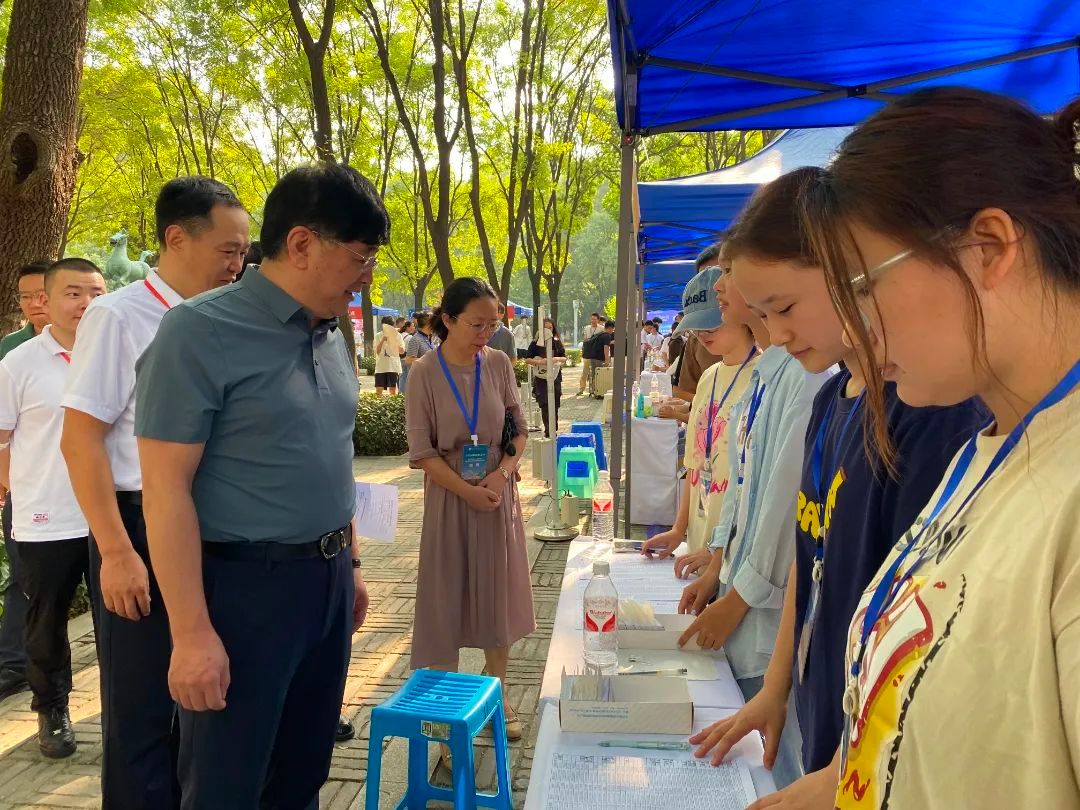 迎新现场,详细询问了解学院各项工作准备情况和新生报到情况,与新生和迎新师生进行亲切交谈,不仅让新生们感受到来自学校的关怀,也让他们即将开启的学术生涯动力满满。