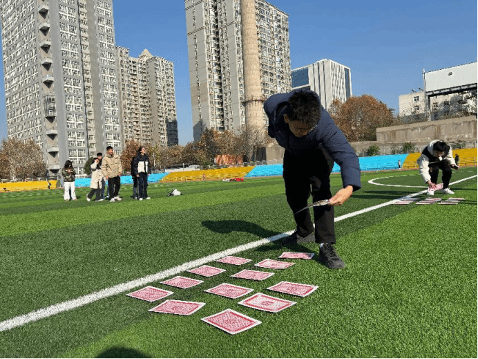 第二场“达芬奇密码”,成员列队,按顺序翻1-13号牌,错则复原,对则留正,依次类推至13,先完成为胜,队员们积极配合,全力以赴,由环境专业拿下第二场比赛胜利。由于赛制三比二胜出原则,环境专业赢得此次心理团辅趣味运动会冠军。