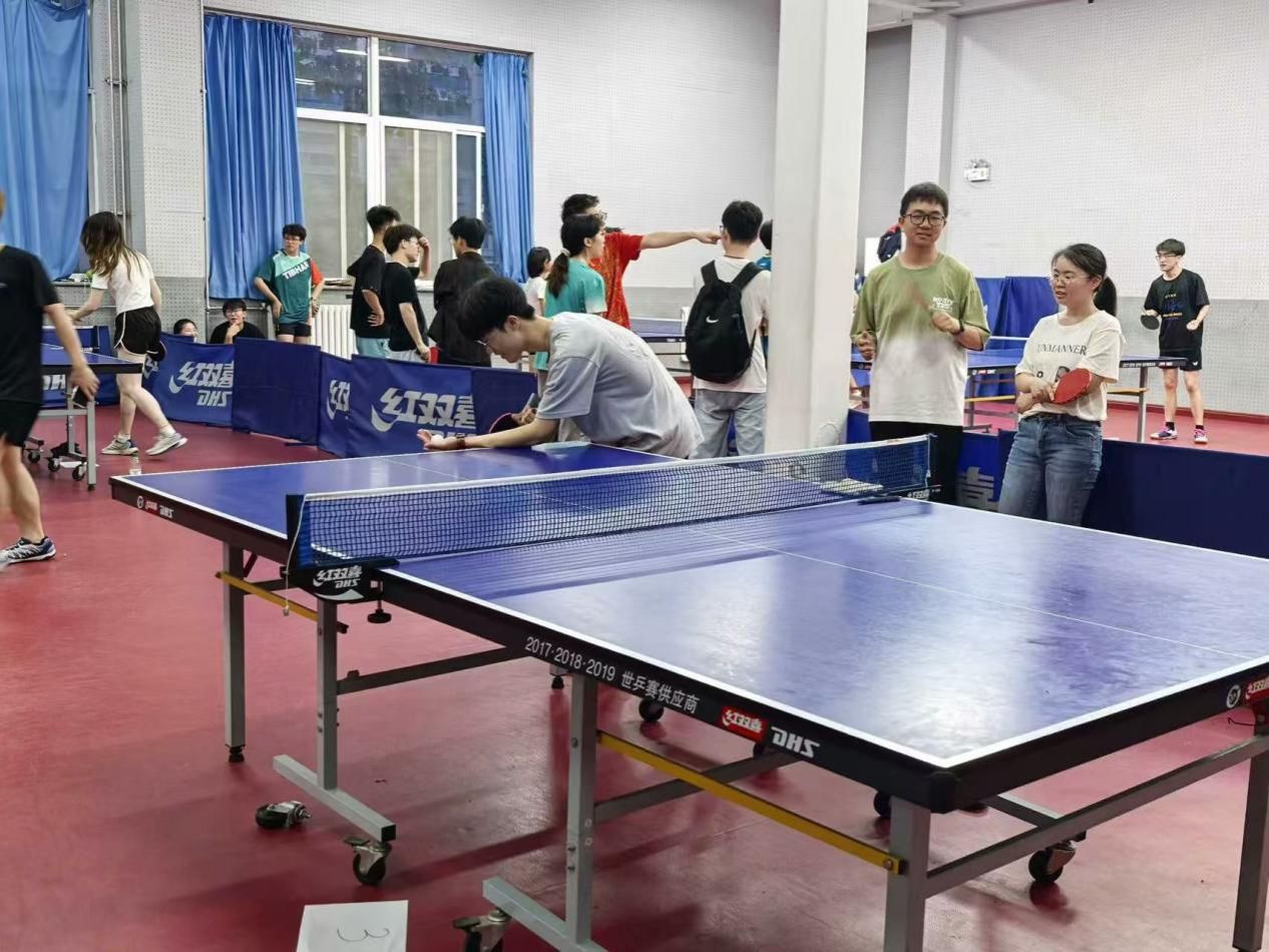决赛现场,氛围紧张到顶点。]与对手展开“神仙打架”,比分交替上升,精彩回合不断。一记记精彩的扣杀点燃全场欢呼,巧妙的台内小球又引得观众屏息。双方在球桌上“乒”出火花,环境学子不服输、敢拼搏的精神,随着乒乓球的跳跃传递给每一个人。