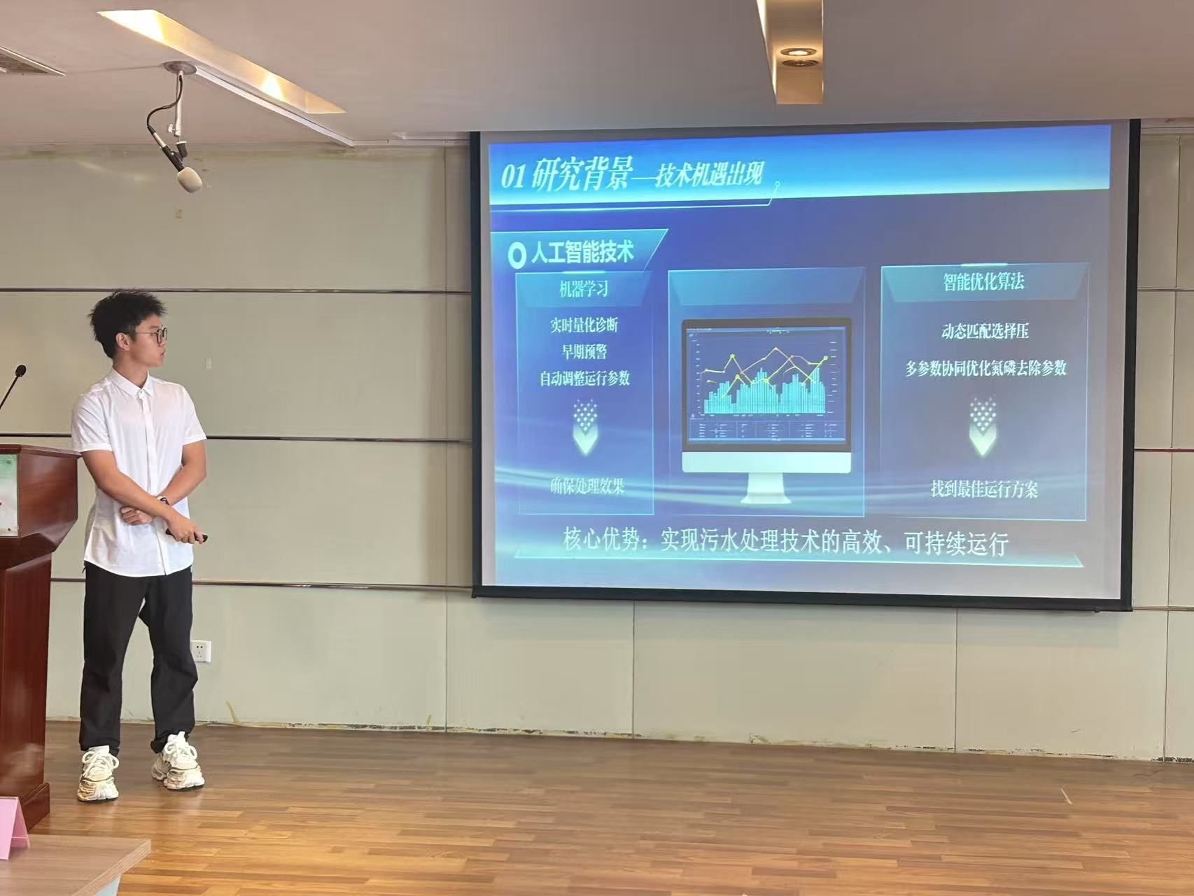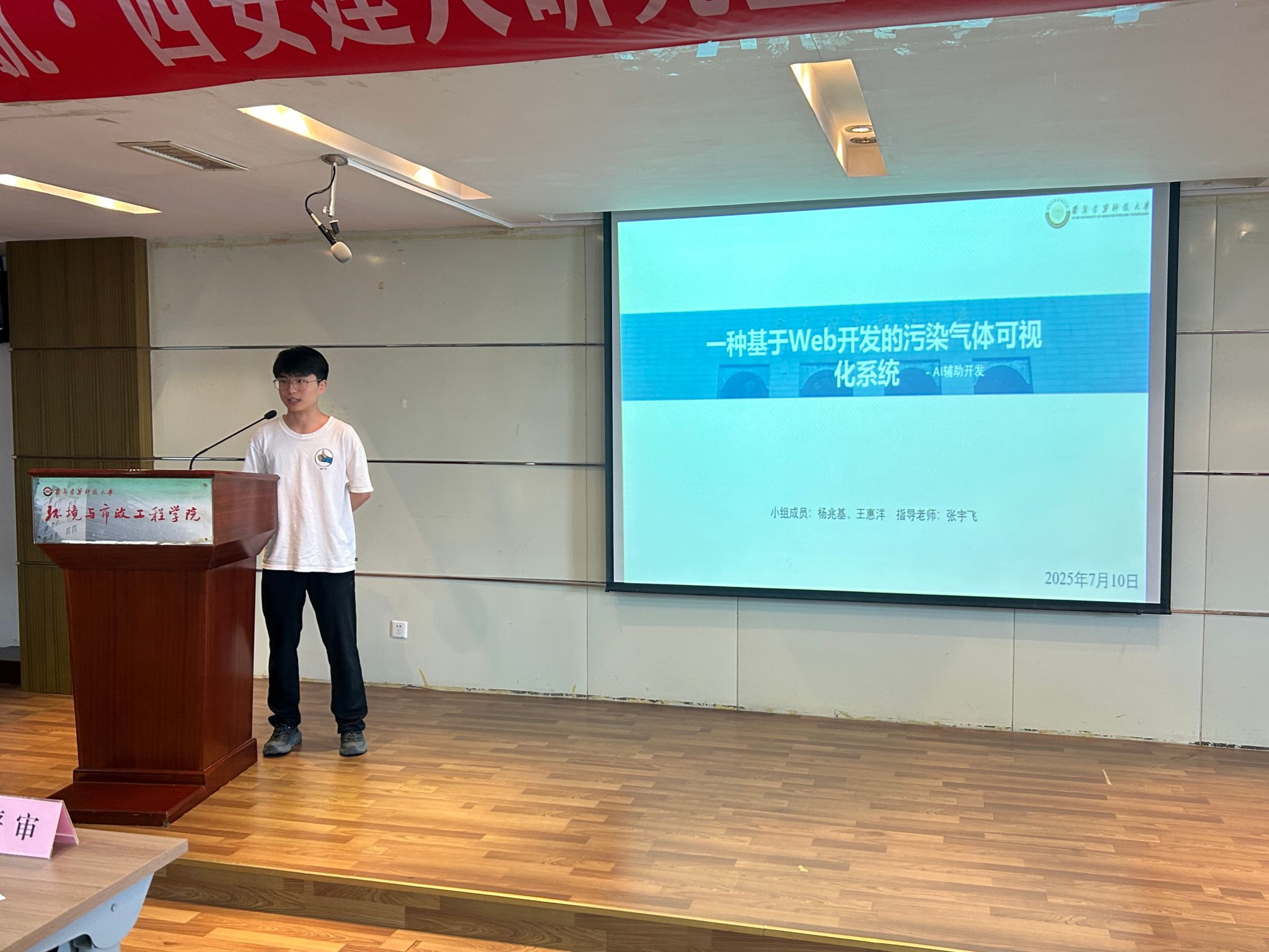 于环工楼716报告厅举办“智创领航・AI 素养与创新实践大赛”院赛终审答辩,本次答辩会邀请资源学院杨铭扬以及脱衣舞