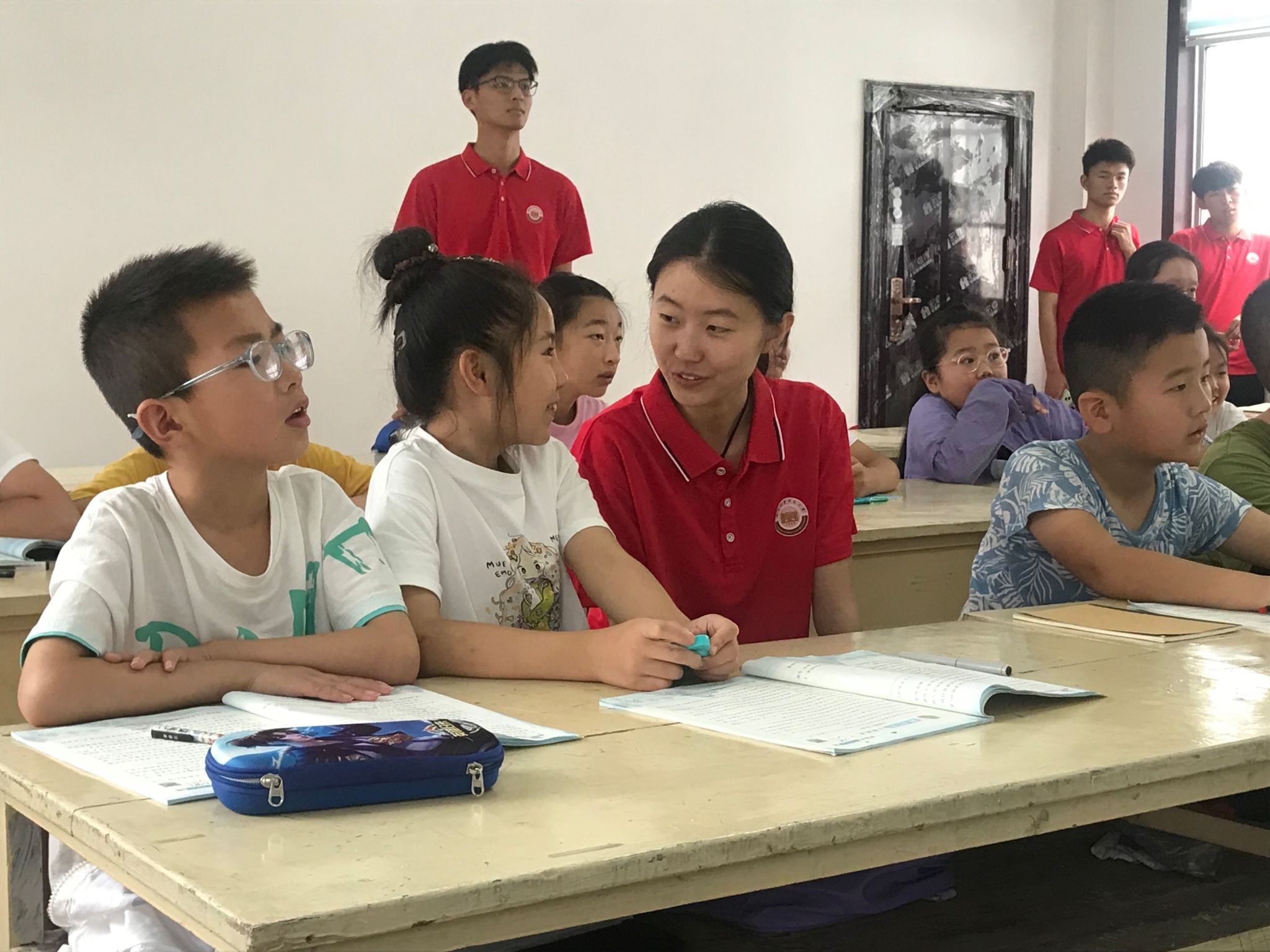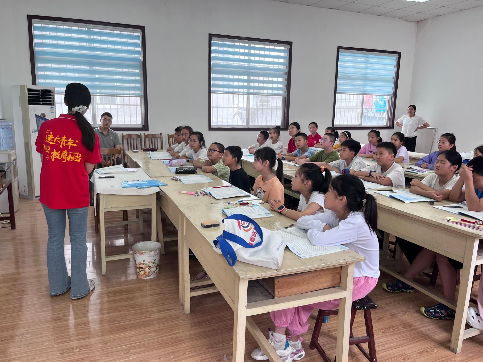 图为团队成员陈昱如同学与小朋友们交流课堂内容。通讯员任治锦摄